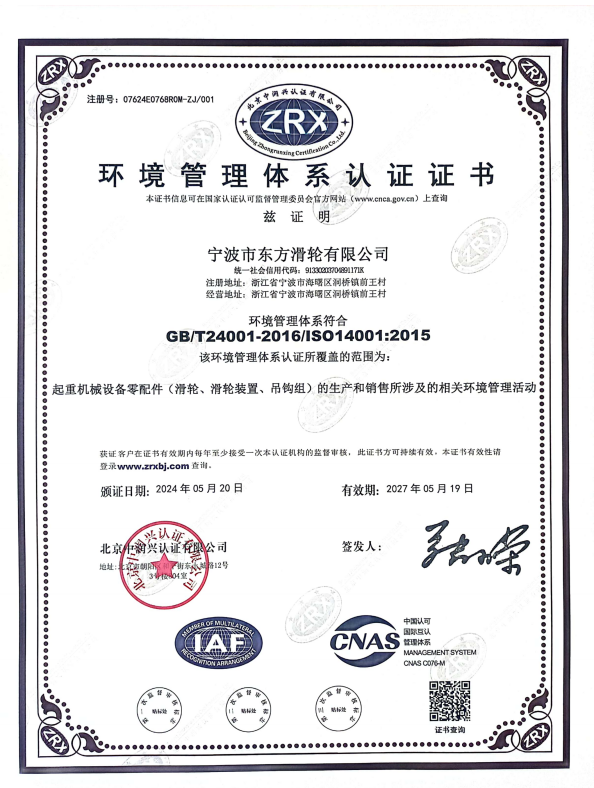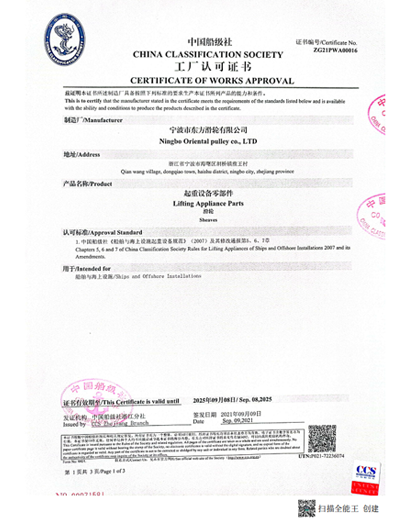 寧波市東方滑輪有限公司(簡(jiǎn)稱(chēng)寧波東方滑輪),成立于1998年,位于浙江省寧波市海曙區(qū),是一家專(zhuān)業(yè)從事鋼絲索相關(guān)滑輪傳動(dòng)裝置的開(kāi)發(fā)研究、創(chuàng)新設(shè)計(jì)及精密制造的廠(chǎng)家。2004年首批通過(guò)了ISO9001質(zhì)量管理體系認(rèn)證,2021年由中國(guó)船級(jí)社頒發(fā)了《CCS工廠(chǎng)認(rèn)可證書(shū)》,公司還擁有多項(xiàng)國(guó)際領(lǐng)先的發(fā)明和實(shí)用新型專(zhuān)利,參與起草國(guó)家機(jī)械部標(biāo)準(zhǔn)認(rèn)定《JB-T8398-1996雙幅板壓制滑輪》,現(xiàn)有員工逾百人。