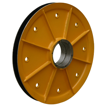 滑輪幅板采用幅板壓制成型,滑輪兩支點受力,與輪轂成三角形,加強滑輪的穩(wěn)定性,此結構新穎,為我司獨有滑輪生產工藝,相同受力情況下,可減少滑輪重量,R槽為車刀成型,因此與輪轂軸的同軸度更高,R槽跳動小,性價比極高。